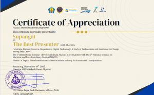 - Adaptasi SDM Maritim terhadap Teknologi Digital: Studi Teknostres dan Resistensi Perubahan pada Awak Kapal, Oleh: Supangat, S.Pd., MM & Sugeng Marsudi, ST., MM., M.Mar.E