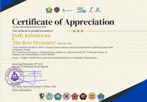 - Dedy Kristiawan, ST., MM (Dosen Prodi Teknologi Rekayasa Operasi Kapal)
